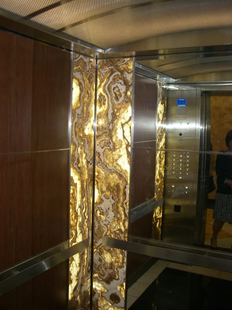 In commercial projects, it is said that the elements of function, design and maintenance must be addressed. Stone panels from Los Angeles-based Sorccia are functional, even as flooring - we use non-slip glass on top that helps protect your clients from slipping or falling, while creating the look of a larger space, as there are no definite lines between the panels because no grout is used in installation. Stones like marble and onyx are natural products that will always be in style, especially the high quality materials that we use for our panels. Maintenance is easy when Sorccia is your Los Angeles marble supplier, because no grout is needed; there is no discoloration of grout or worry of high maintenance cleaning of grouted tiles. Commercial projects are no longer stale and neutral. Let your imagination go wild and create an office or lobby space that customers will remember!